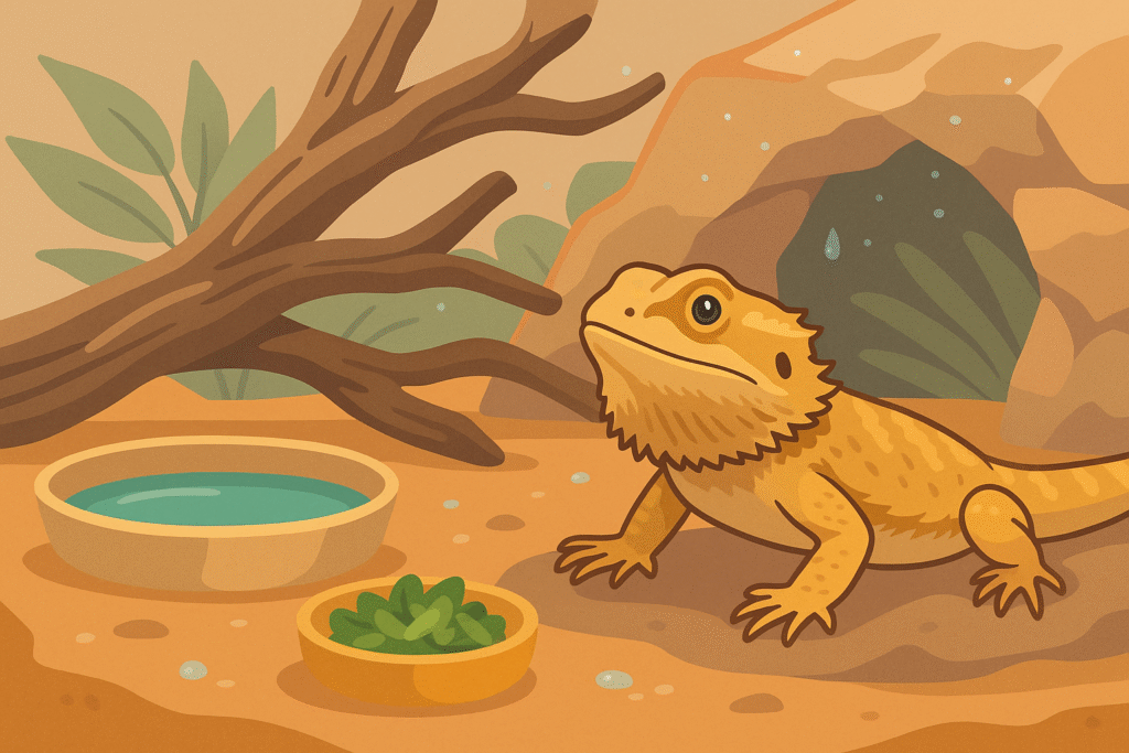 Esistono poi piccoli accorgimenti quotidiani che fanno la differenza. Controllare che il drago abbia sempre una ciotola d’acqua fresca, anche se non la userà molto, è un gesto di sicurezza. Monitorare regolarmente il livello di umidità con strumenti adeguati permette di capire se l’ambiente è troppo secco o troppo umido. Infine, osservare il comportamento dell’animale rimane lo strumento migliore: un drago barbuto attivo, curioso e con pelle in buone condizioni difficilmente avrà bisogno di bagni frequenti.