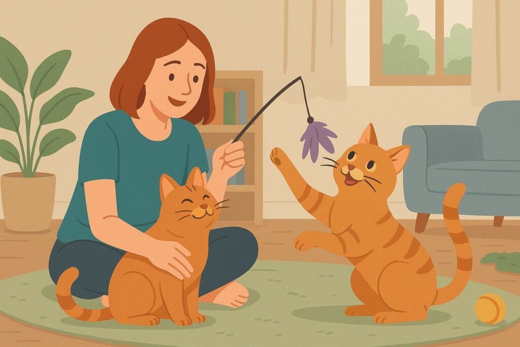 Il gioco è un’arma potentissima contro la gelosia. Tirare fuori una bacchetta con piume, una pallina o un semplice scatolone può trasformare l’umore del micio. Non solo scarica l’energia, ma gli restituisce la sensazione di essere coinvolto e importante. È come dirgli: “Ehi, sei ancora tu il protagonista di questa casa”.