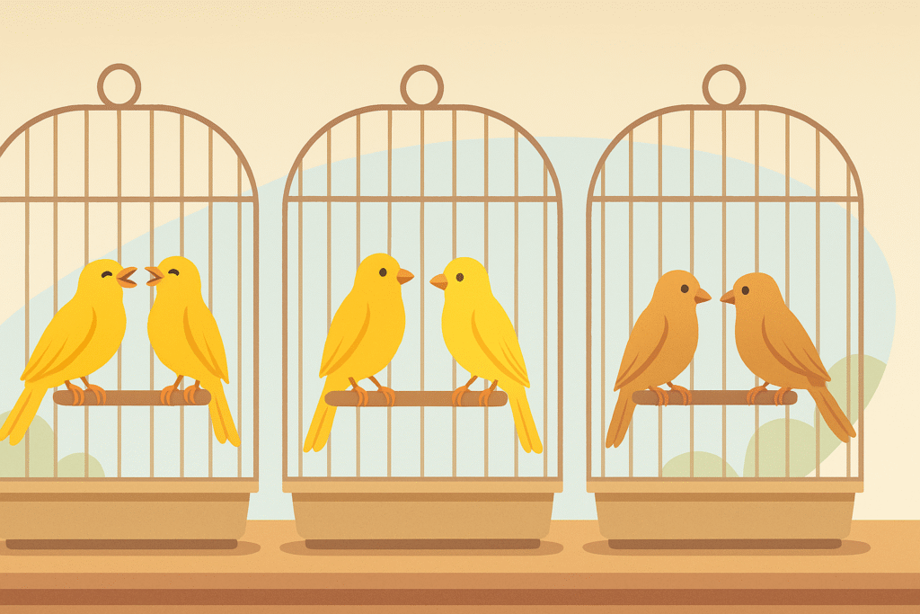 Quando si parla di mettere due canarini nella stessa gabbia, la prima cosa da considerare è il sesso dei protagonisti. La combinazione più chiacchierata è sicuramente quella di due maschi. Chiunque abbia avuto l’idea di farli convivere sa che si tratta di una scommessa: a volte si crea un duetto spettacolare, con canti che si alternano e riempiono la stanza di melodie. Altre volte, invece, la situazione degenera in una vera gara canora, con note che diventano sfide e possono trasformarsi in tensione. Non sempre arrivano a litigare fisicamente, ma lo stress è dietro l’angolo.
